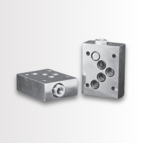 HYDRAULIC SANDWICH BODY, SHUTTLE FUNCTION, CETOP 5, SUN T162-A CAVITY, STEEL, NICKEL PLATED, MAX PRESSURE 350 BAR, PORT SIZE 1/4” BSP