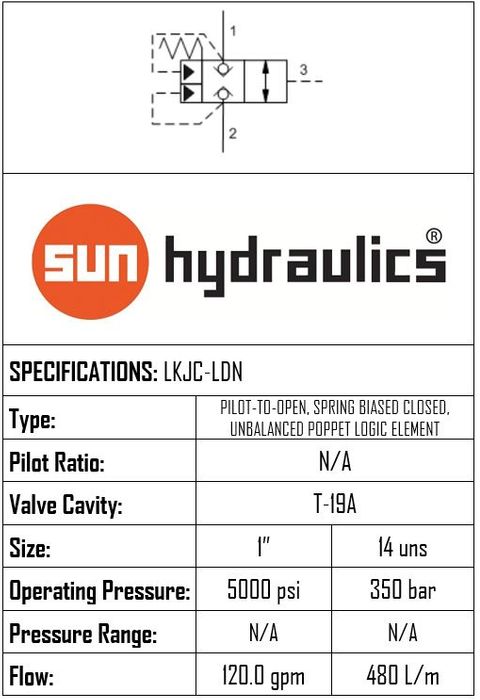 LKJC-LDN • LOGIC ELEMENT VALVE PILOT TO OPEN UNBALANCED POPPET • T-19A • 350 BAR • 454 LPM • SUN