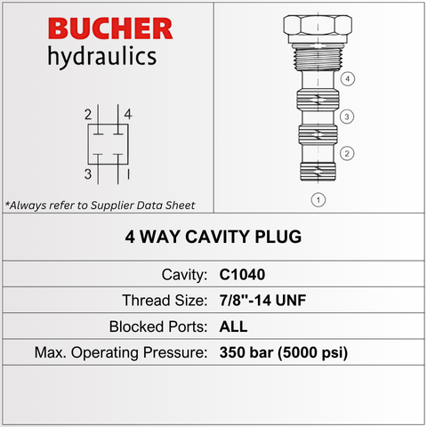 CPLG-10-N-40-000 • CAVITY PLUG 2-WAY BLOCKS ALL PORTS • C-10-40 • 350 BAR • BUCHER HYDRAULICS