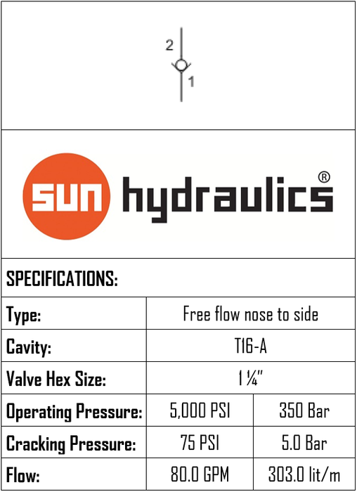 CXHA-XEN • CHECK VALVE FREE FLOW NOSE TO SIDE • 5 BAR • T-16A • 350 BAR • 303 LPM • SUN