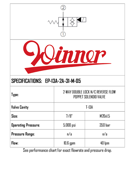 SOLENOID DOUBLE POPPET 2-WAY, 2-POSITION, N/C, 13A-2, 40LPM, 350BAR, MAN OR