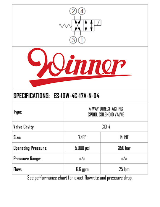 ES10W4C17AN04 • SOLENOID VALVE DIRECT-ACTING, SPOOL TYPE, 4-WAY 2-POSITION • C-10-4 • 350 BAR • 20 LPM • WINNER