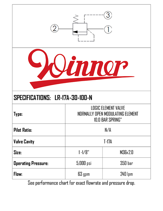LR17A30100N • LOGIC ELEMENT VALVE SPOOL TYPE NORMALLY CLOSED MODULATING ELEMENT • T-17A • 350 BAR • 240 LPM • WINNER