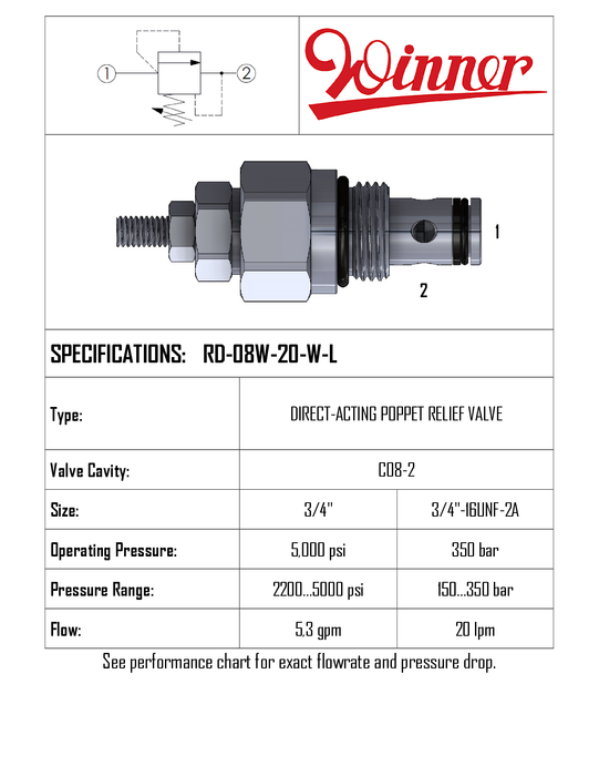RELIEF VALVE, DIRECT ACTING, C08-2, 20 LPM, 150-350 BAR