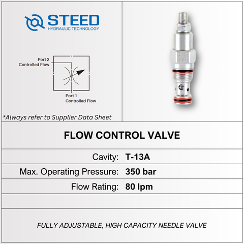 NF2D T13A-LFN • FLOW CONTROL VALVE, FULLY ADJUSTABLE, HIGH CAPACITY NEEDLE VALVE • T-13A • 350 BAR • 80 LPM • STEED
