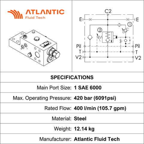 ML000081 • CHECK & METERING VALVE ISO8643 • 1" SAE 6000 × 1 AND 1" SAE 3000/6000 × 1 AND G 1/4" × 3 • 420 BAR • 400 LPM • AFT