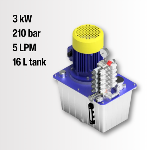 HPU-AC-3,0-16 • 415 V AC • MOTOR 3.0 KW • PRESSURE 300 BAR • FLOW 5 L/MIN • TANK 16 L • PMC 30 • PRIMEHYD