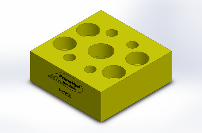 P52820 PrimeHyd — Port adaptor block; Cylinder port SAE 61-16, Valve port SAE 62-16; Offset 90°.
