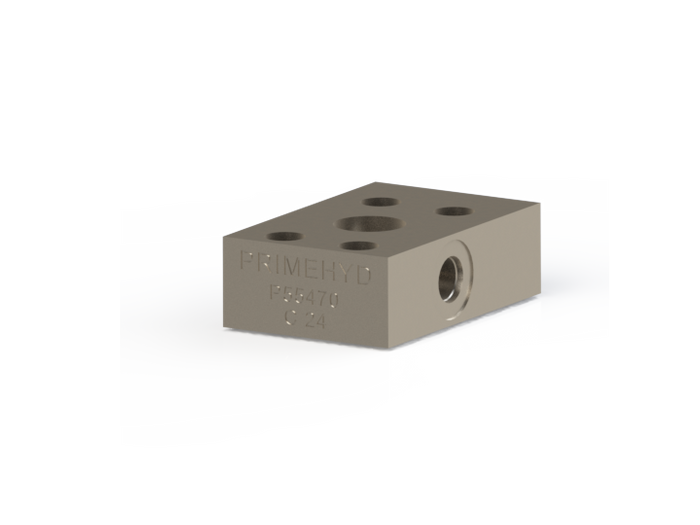 P55470 PrimeHyd — Pilot adaptor block; Cylinder port SAE 61-12, Valve port SAE 61-12; Pilot port 7/16" UNO.