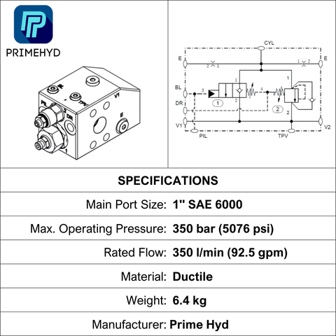 HECV16C-DS350-01 • CHECK & METERING CARTRIDGE • G 1/4"-19 × 3 AND G 1/8"-28 × 2 AND 1" SAE 3000 / G 3/4"-14 × 2 • 350 BAR • 350 LPM • PRIMEHYD