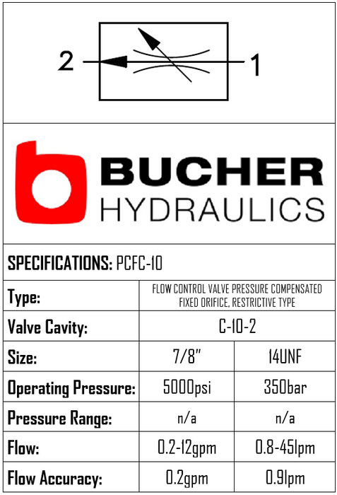 PCFC-10-N-F-0-00 • FLOW CONTROL VALVE, PRESSURE COMPENSATED • C-10-3 • 350 BAR • 45 LPM • BUCHER