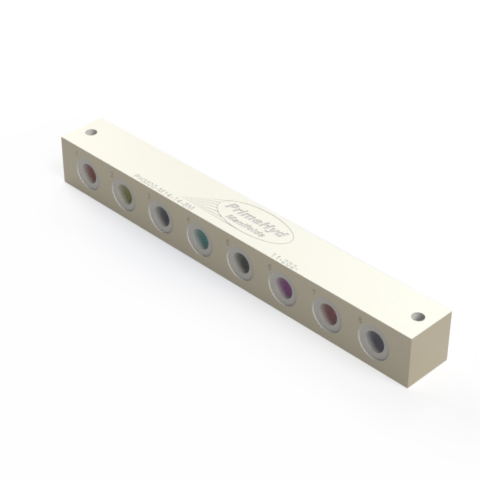 PHM00-M14-14-8M HYDRAULIC 180° BSPP JUNCTION MANIFOLD, PORT SIZE: M14, MATERIAL: ALUMINIUM, MAX OPERATING PRESSURE: 210 BAR, PRIMEHYD