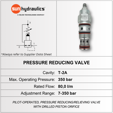 PPFF-LWN • PRESSURE REDUCING/RELIEVING VALVE PILOT OPERATED • T-2A • 350 BAR (7–350 BAR) • 80 LPM • SUN