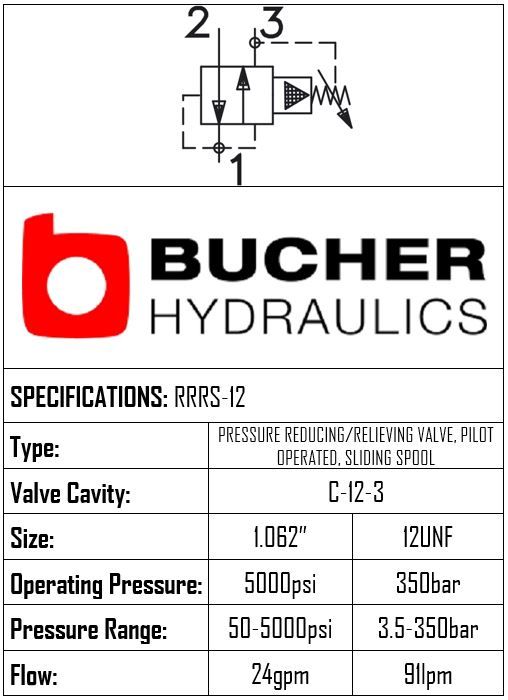 PRRS-12-N-S-0-50 • PRESSURE REDUCING/RELIEVING VALVE PILOT OPERATED SPOOL • C-12-3 • 350 BAR (3.5–315 BAR) • 91 LPM • BUCHER