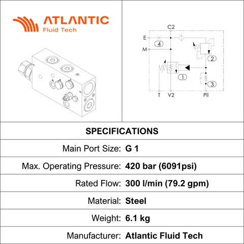 ML000404 • CHECK & METERING VALVE ISO8643 • G 1" BSPP × 2 AND G 1/4" BSPP × 4 • 420 BAR • 300 LPM • AFT