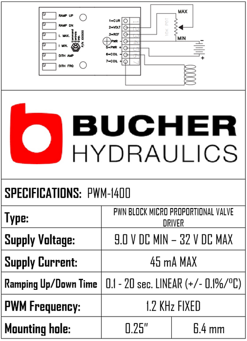 PWM-1400-24 • PROPORTIONAL VALVE DRIVER DIGITAL DISPLAY TYPE WITH RAMP CONTROL AND CURRENT REGULATION • BUCHER