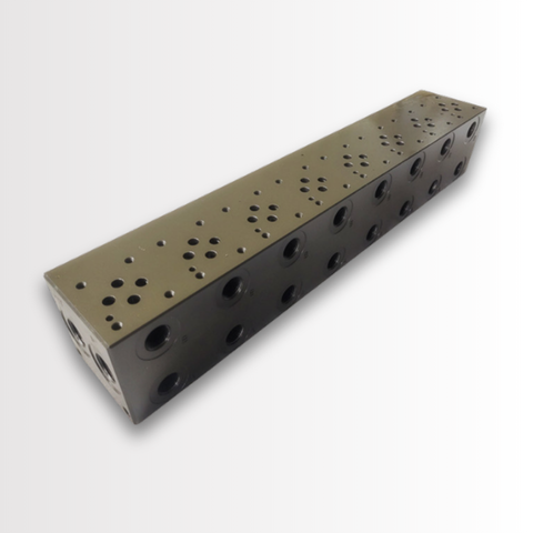 HYDRAULIC MANIFOLD PARALLEL, SIDE PORTED BSPP WITH COMMON CAVITY C10-2, CETOP 3, 8 STATIONS, STEEL, NICKEL PLATED, MAX WORKING PRESSURE 350 BAR, PORT SIZE: P&T 1/2" BSPP, A&B 3/8" BSPP, G 1/4" BSPP