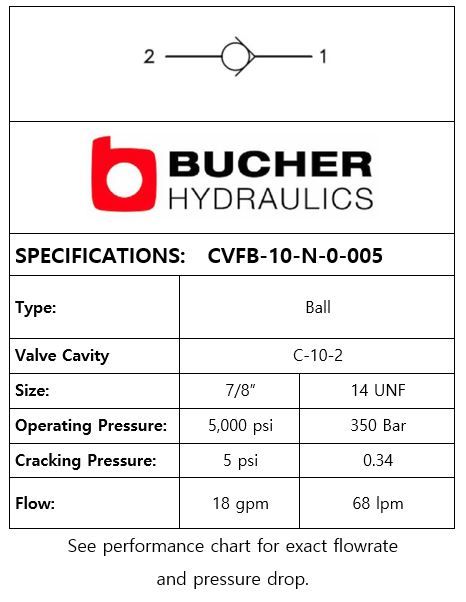CVFB-10-N-0-005 • CHECK VALVE FORWARD GUIDED BALL • 0.34 BAR • C-10-2 • 350 BAR • 68 LPM • BUCHER